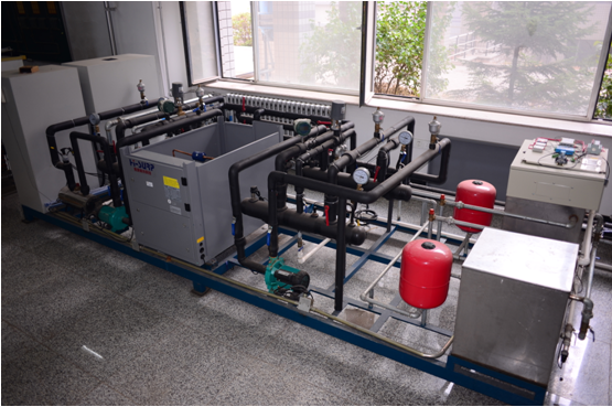 学院教师自制的试验系统,地源热泵全年运行工况稳定,不需要其它辅助热源及冷却设备即可实现冬季供热、夏季供冷。